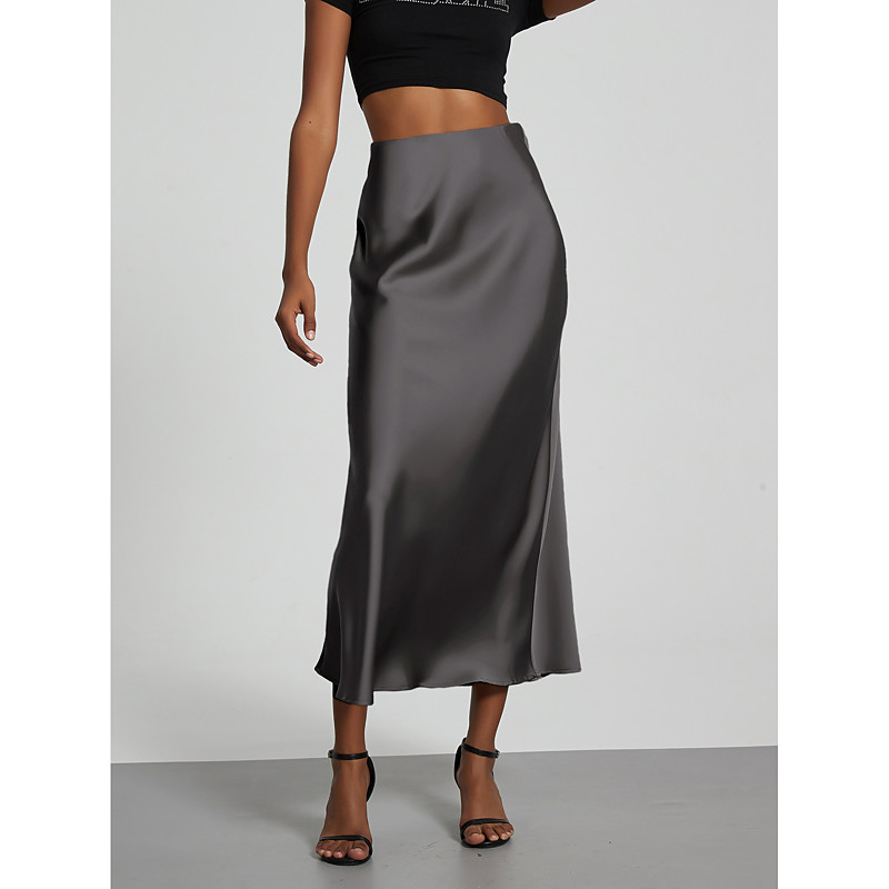 Women's Skirt Bodycon Elegant Fashion Midi High Waist Skirts Plain Micro-elastic Party Street Black Wine Khaki Dark Grey Spring Satin Polyester