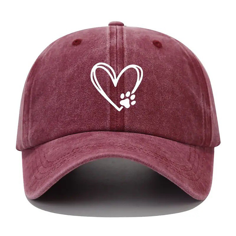 Women's Unisex Baseball Cap Heart Paw Print Curved Brim Adjustable Casual Hat Outdoor Everyday Wear Animal Lovers One Size Fits Most