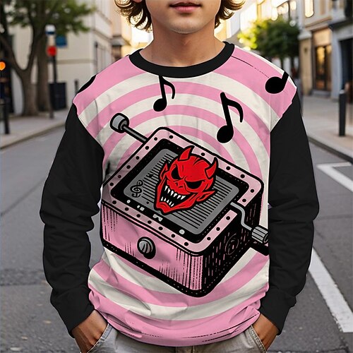 Halloween Jungen 3D Kürbis Geist T-Shirt Langarm Frühling Herbst Mode Basic Kinder 4-12 Jahre Rundhalsausschnitt Outdoor Lässig Täglich Normale Passform