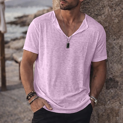 Da uomo Maglietta Maglietta in lino Manica Corta Maniche Corte Scollo a V Estate Semplice Moda Designer Essenziale Morbido Casuale Vacanza Streetwear Blu chiaro Nero Bianco Maglietta Top per Uomo
