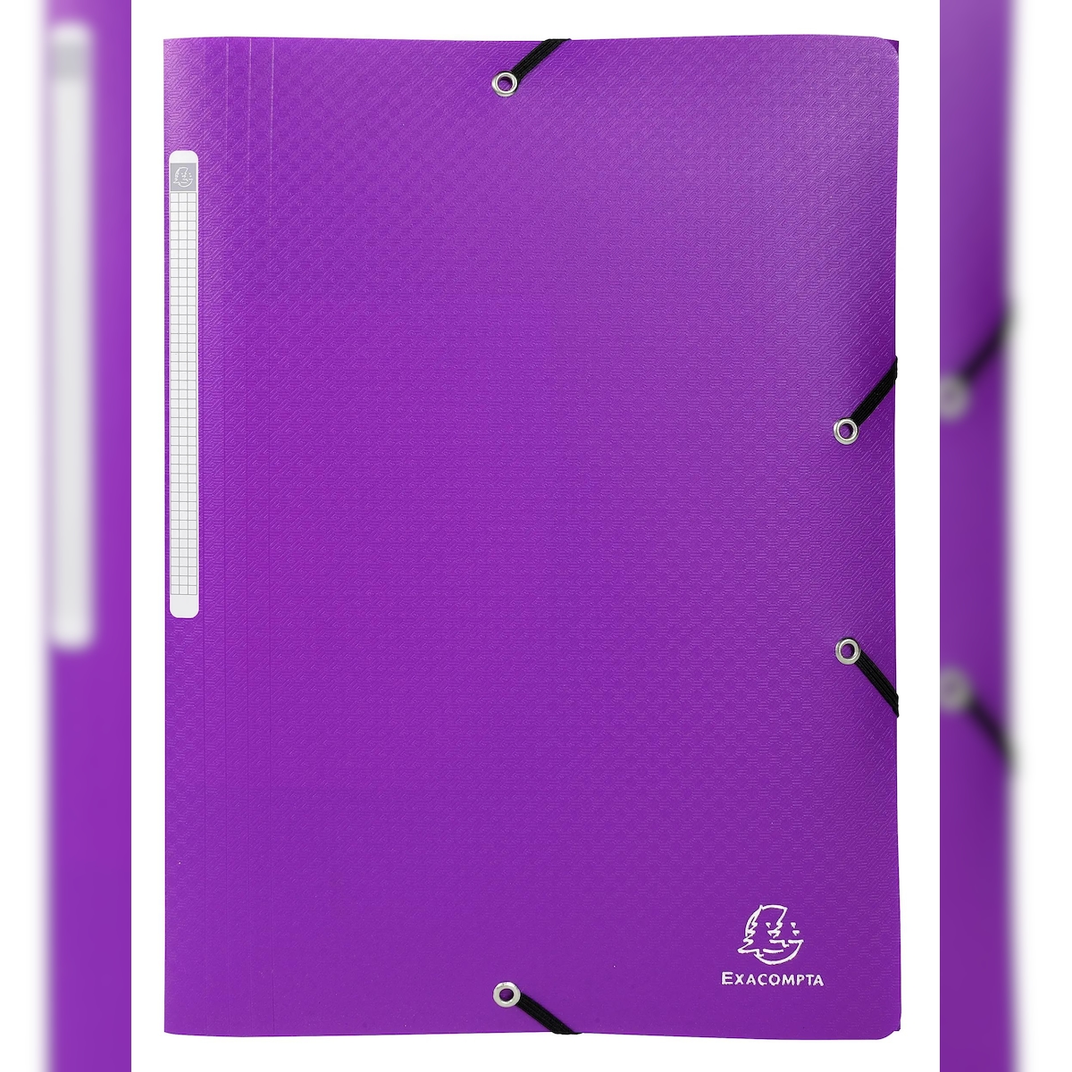 Exacompta 55818E 50x Sammelmappe mit 3 Klappen und Gummizug aus PP 500µ mit Etikett blickdicht, 24x32cm für DIN A4 - Violett