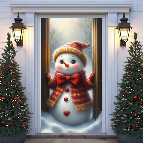 Copriporta natalizio, decorazione invernale per le feste, con stampa di pupazzo di neve e ghirlanda natalizia, per ingresso, soggiorno, camera da letto, interni ed esterni, decorazioni festive