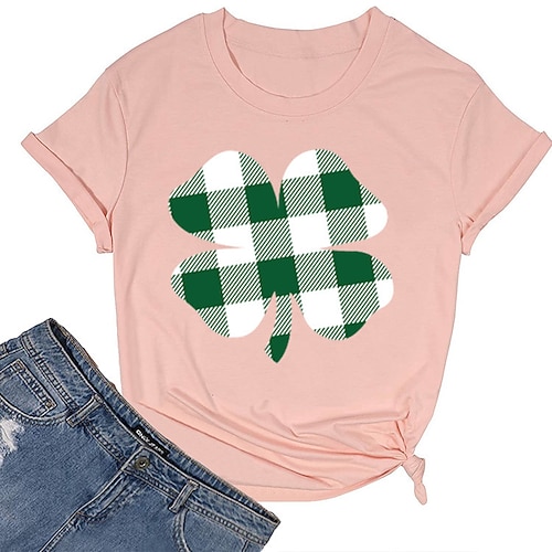 Giorno di San Patrizio Festa di San Patrizio Per donna Maglietta Trifoglio Moda Manica Corta Girocollo Top Regolari Casuale Giorno di San Patrizio Stampato Nero Bianco Giallo Rosa Verde Primavera