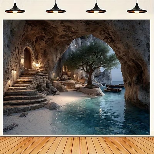 nave pirata avventura nautica ponte di nave in legno onde dell'oceano vista del mare lanterne tramonto arazzo da parete sfondo da appendere per soggiorno camera da letto tana dell'uomo festa a tema