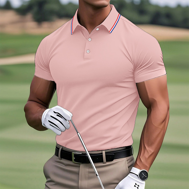 Men's Golf Shirt Pique Polo Shirt Business Casual Ribbed Polo Collar Short Sleeve Fashion Basic Solid Color Plain Buttons Summer Spring Fall Slim Fit Black Pink White Yellow Light Green Red Golf