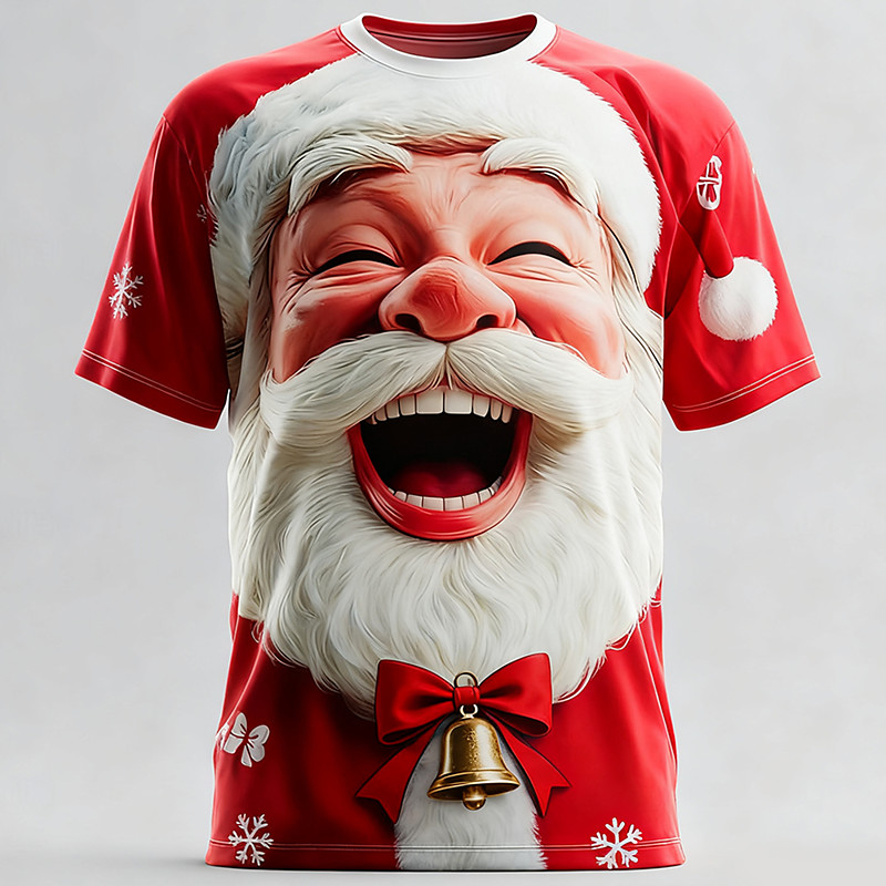 Christmas Men's Santa Claus 3D Cartoon T Shirt Short Sleeve T shirt 3D Print Crew Neck Shirt Daily Designer Artistic Vacation Party Street Red 3 Red Red 2 All Seasons Clothing Apparel S M L XL XXL