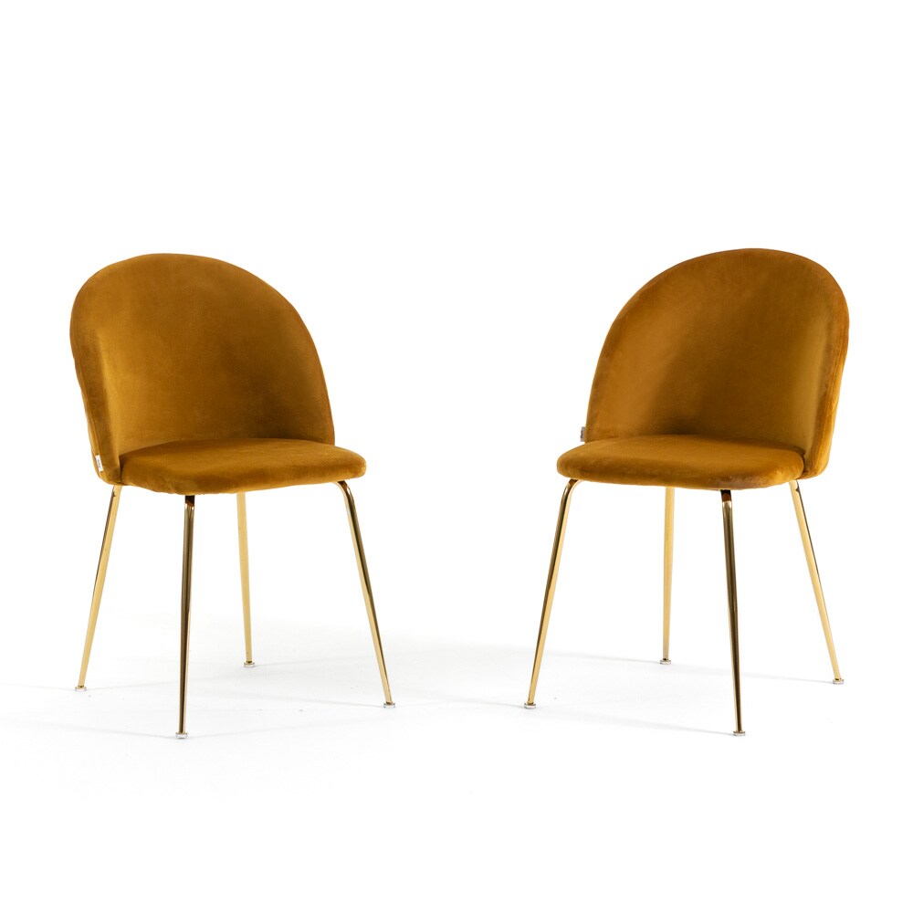 RATTATAN Set aus 2 Innenstühlen aus Samt, gepolstert, mit Metallbeinen, elegantes Design für Esszimmer, Bar und Restaurant – Sara – Senf/Gold