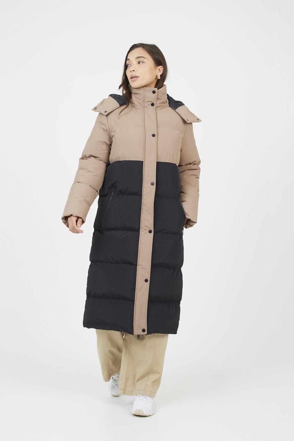 Brave Soul Womens Tan Maxi Contrast Hooded Puffer Jacket - Size 14 UK | Brave Soul Sale | Discount Designer Brands
