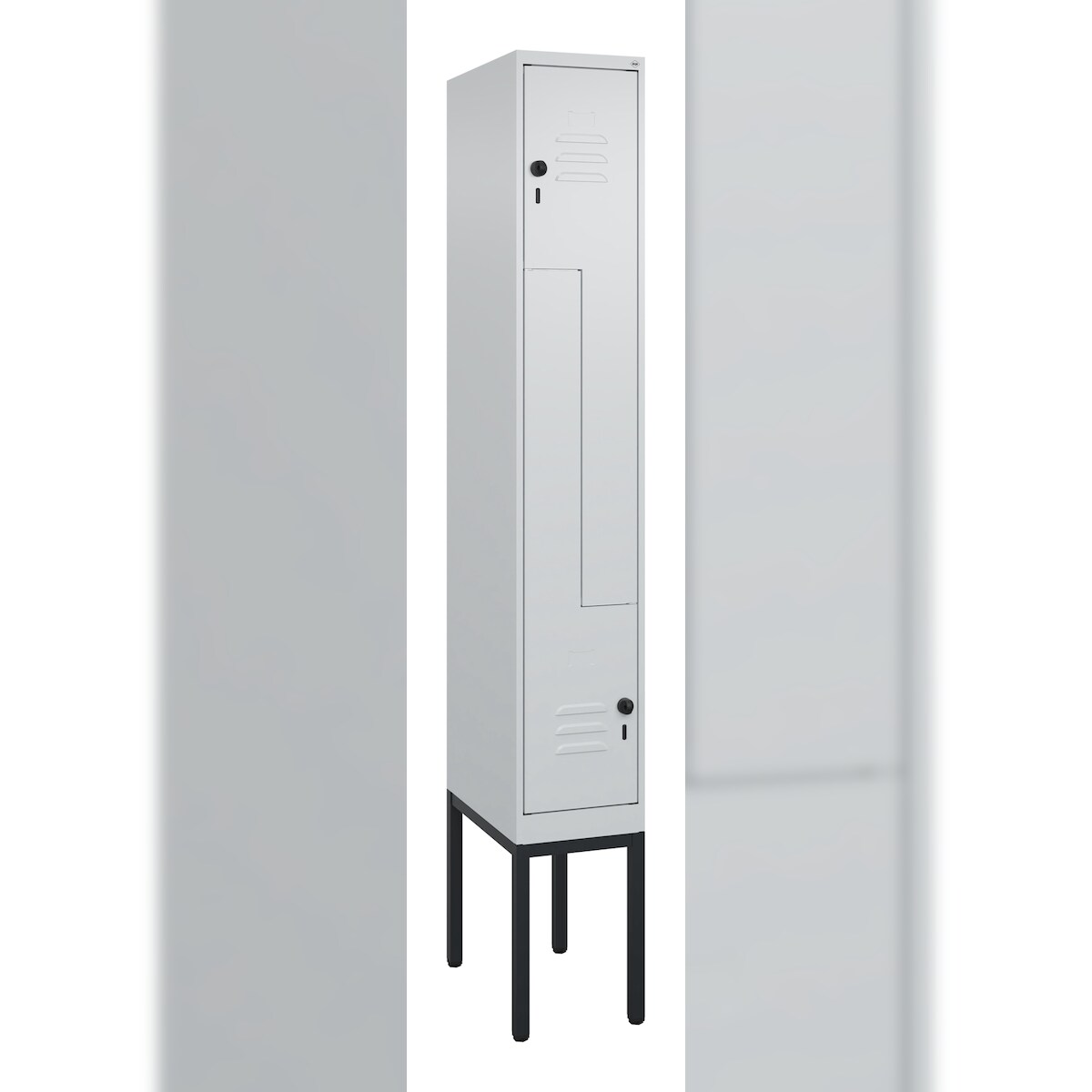C+P Z-Spind Classic PLUS, Gestell, 2 Abteile, HxBxT 212x30x50cm, Sicherheitsdrehriegel, Hellgrau/Hellgrau von PROREGAL