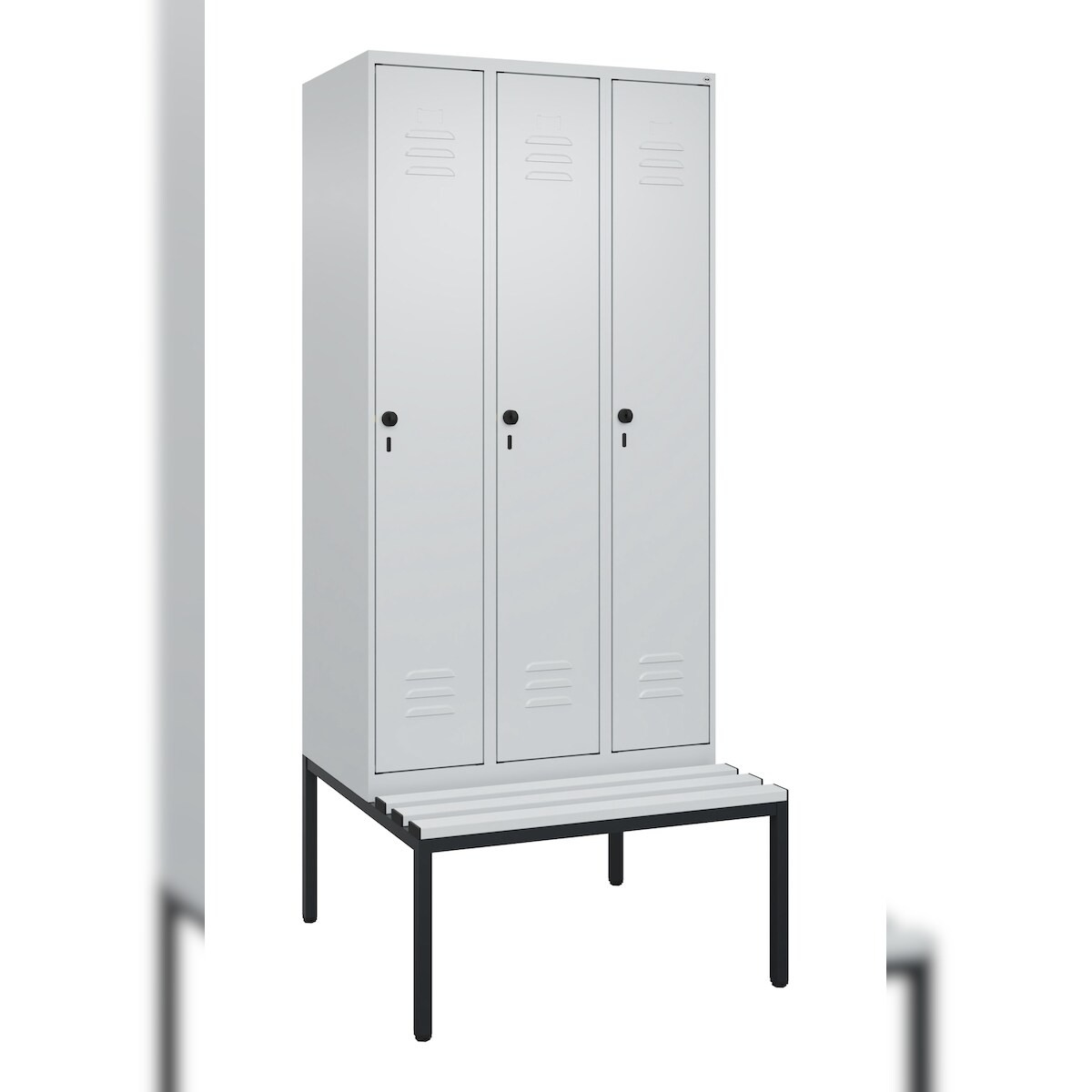 C+P Spind Classic PLUS, Kunststoff untergebaute Sitzbank, 3 Abteile, HxBxT 212x90x82cm, Sicherheitsdrehriegel, Hellgrau/Hellgrau von PROREGAL