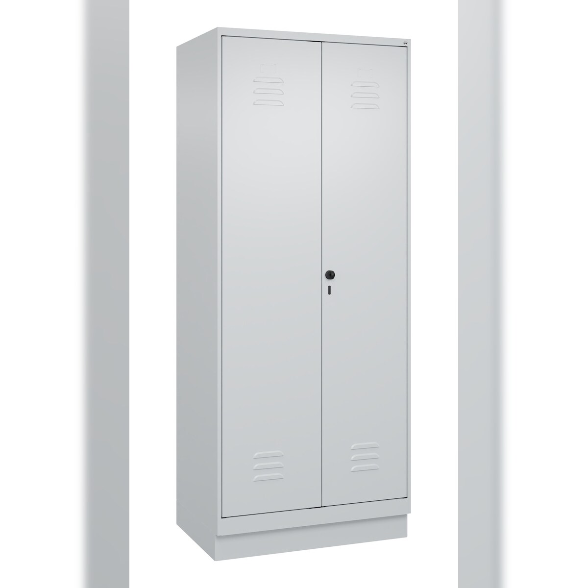 C+P Aufbewahrungs Doppel-Spind Classic PLUS, Sockel, 2 Abteile, Trennwand, HxBxT 195x80x50cm, Sicherheitsdrehriegel, Hellgrau/Hellgrau von PROREGAL