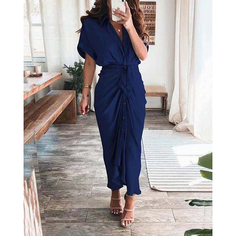 Women's Long Dress Maxi Dress Shirt Dress Casual Dress Summer Dress Stylish Casual Vacation Daily Date Regular Fit Plain Short Sleeve Lapel Black Champagne Red Light Purple Summer Spring