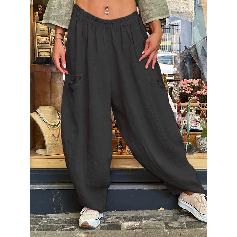 Pantaloni in Cotone Lino per Donna Pantaloni Baggy Chinos Simile Lino Moda Base Lunghezza Completa Vita Media Tasche Semplici Coulisse Comfort All'aperto Micro-elastico Vacanza Strada Quotidiano