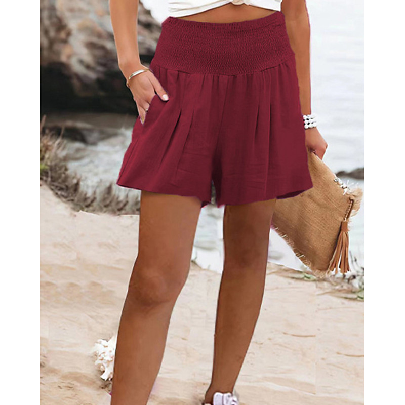 Women's Shorts Sunday Shorts Baggy Shorts Streetwear Casual Short High Waist Plain Elastic Waist Breathability Soft Micro-elastic Vacation Street Daily Wear Wine Black Pink Red Summer Regular Fit