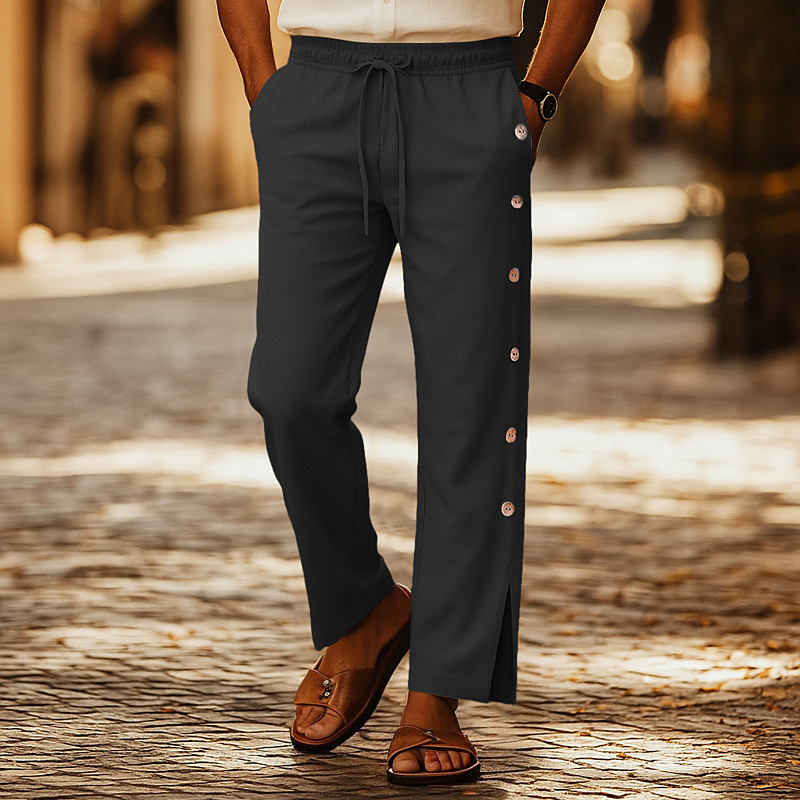 Men's Linen Pants Trousers Summer Pants Baggy Pants Drawstring Elastic Waist Side Button Plain Breathable Knee Length Outdoor Vacation Casual Vacation Ethnic Style Black White Inelastic