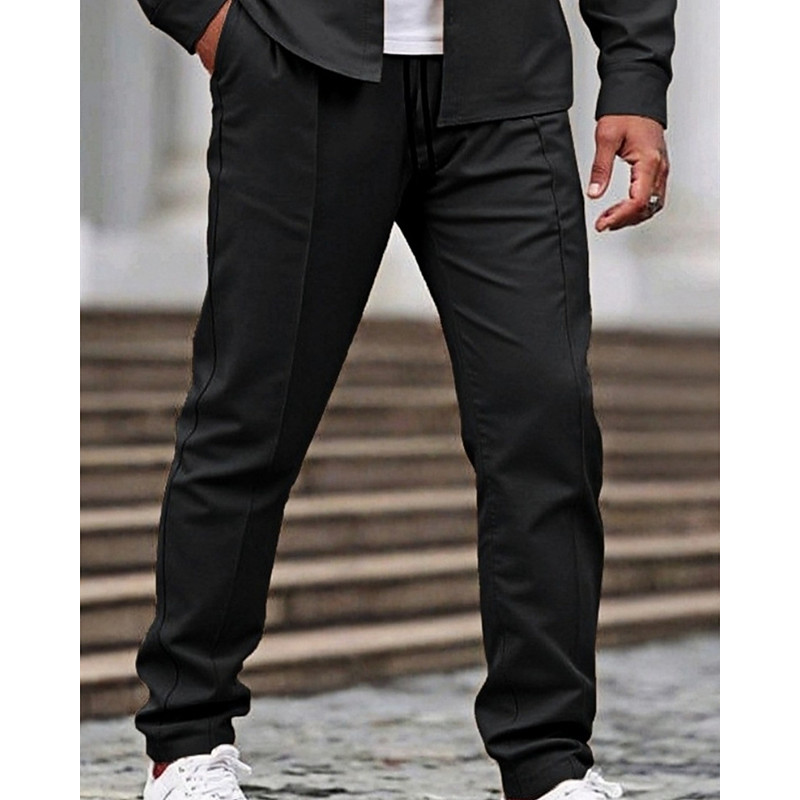 Men's Trousers Summer Pants Baggy Pants Beach Pants Elastic Waist Straight Leg Plain Comfort Breathable Full Length Casual Daily Holiday Vacation Fashion Blue Black Inelastic