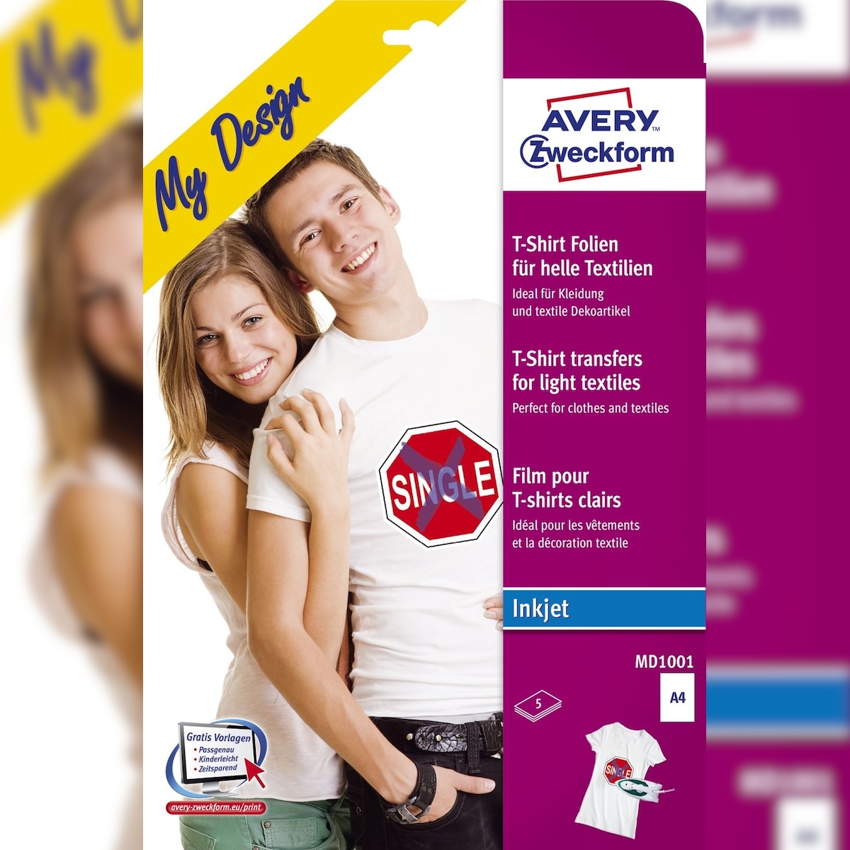 Avery Zweckform® MD1001 MD1001 Textilfolien für helle Textilien, 210 x 297 mm, 5 Blatt