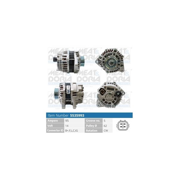 Laturi 14V 95A Meat & doria 5535993 - honda city sedan v, civic hatchback viii, jazz iii - OE 23100VJ610, 31100RB0004, 31100RB0A024