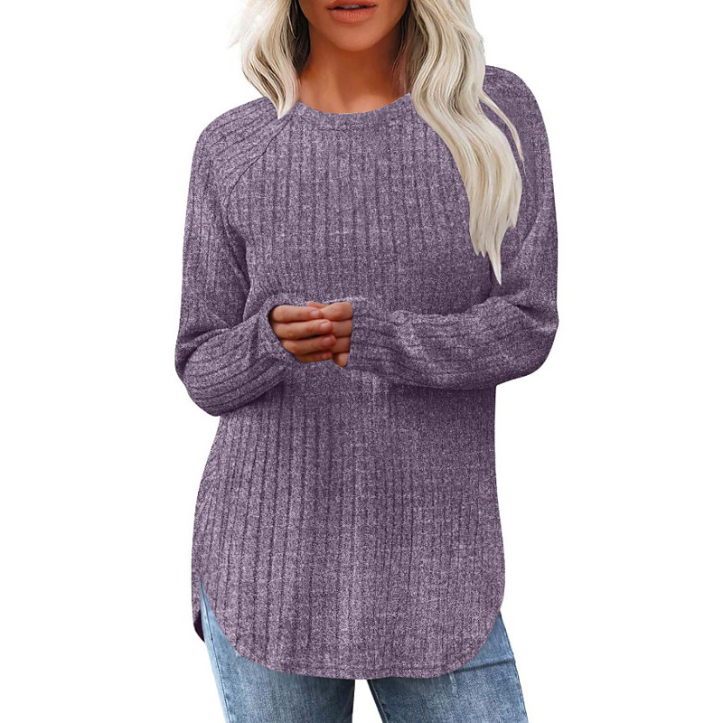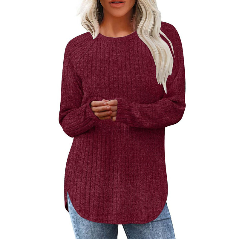 Women's Sweater Casual Soft Pure Color Ribbed Crew Neck Knitted Long Sleeve Regular Tops Knit Outdoor Daily Weekend Black Fuchsia Spring Fall