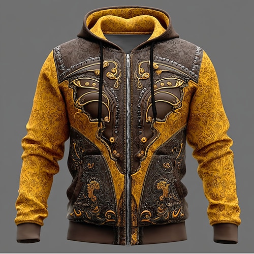 Per uomo Cowboy Costume Felpa con Cappuccio Giacca di pelle Felpa Cowboy Western Stampa su tutta la superficie Manica Lunga Con cerniera Vacanza Abbigliamento casual alla moda Giallo Verde chiaro Blu