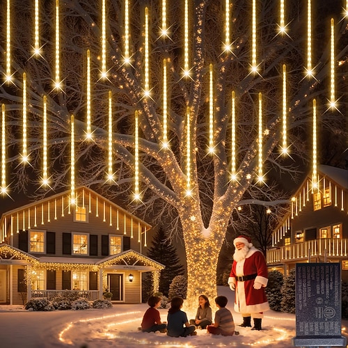 Catena luminosa a pioggia di meteoriti 2 in 1 da 30 cm 16 tubi, 384 perline a LED, per interni ed esterni, cortile, giardino, balcone, portico, grondaie, atmosfera da festival, decorazione, catena luminosa, bassa tensione, spina sicura