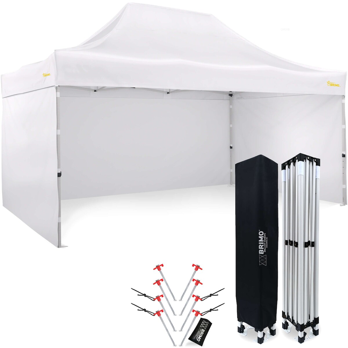 BRIMO Faltpavillons Partyzelt 3x4,5 m - mit 3 Wänden - Weiß