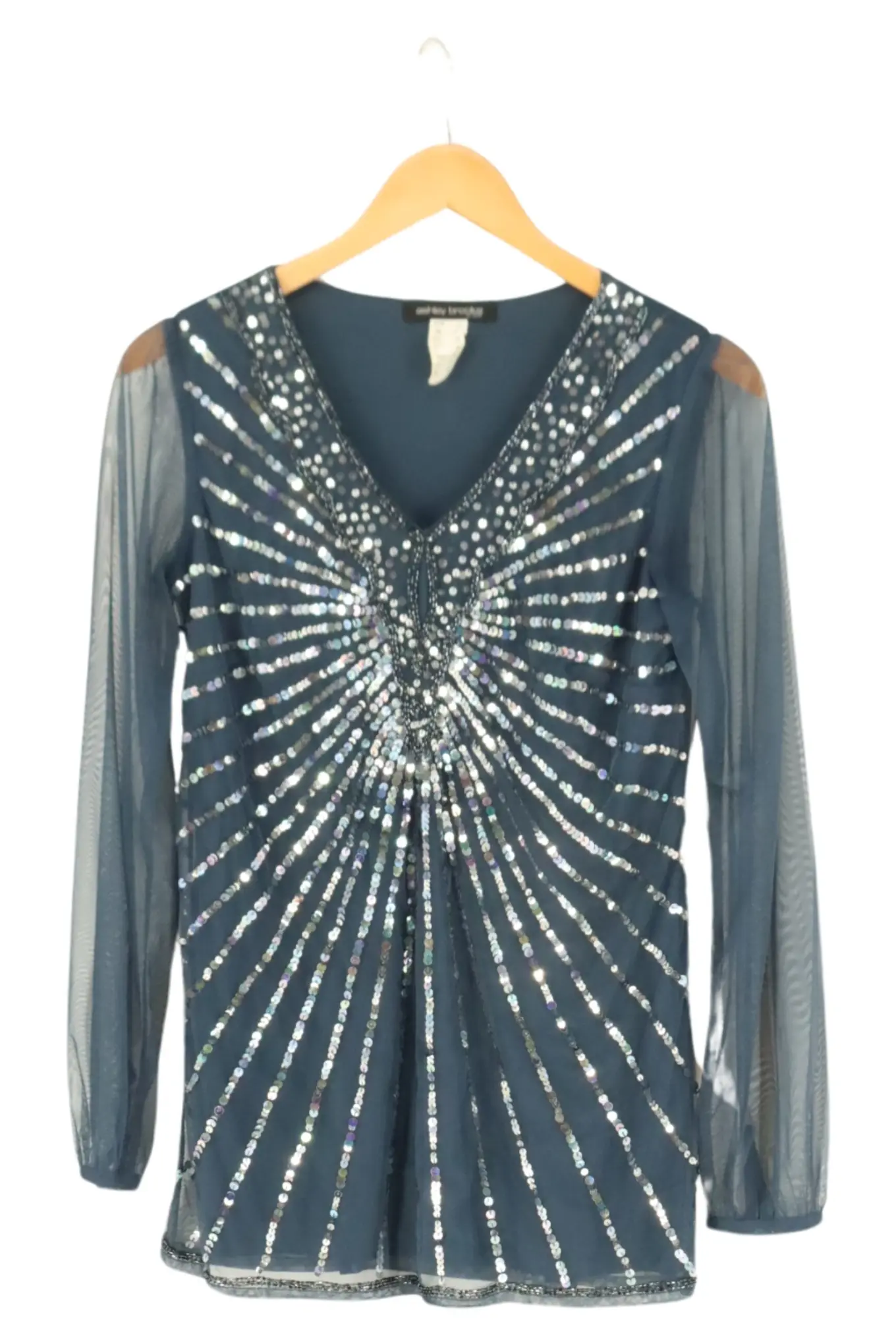 ASHLEY BROOKE Bluse Gr. 34 Blau Pailletten Langarm