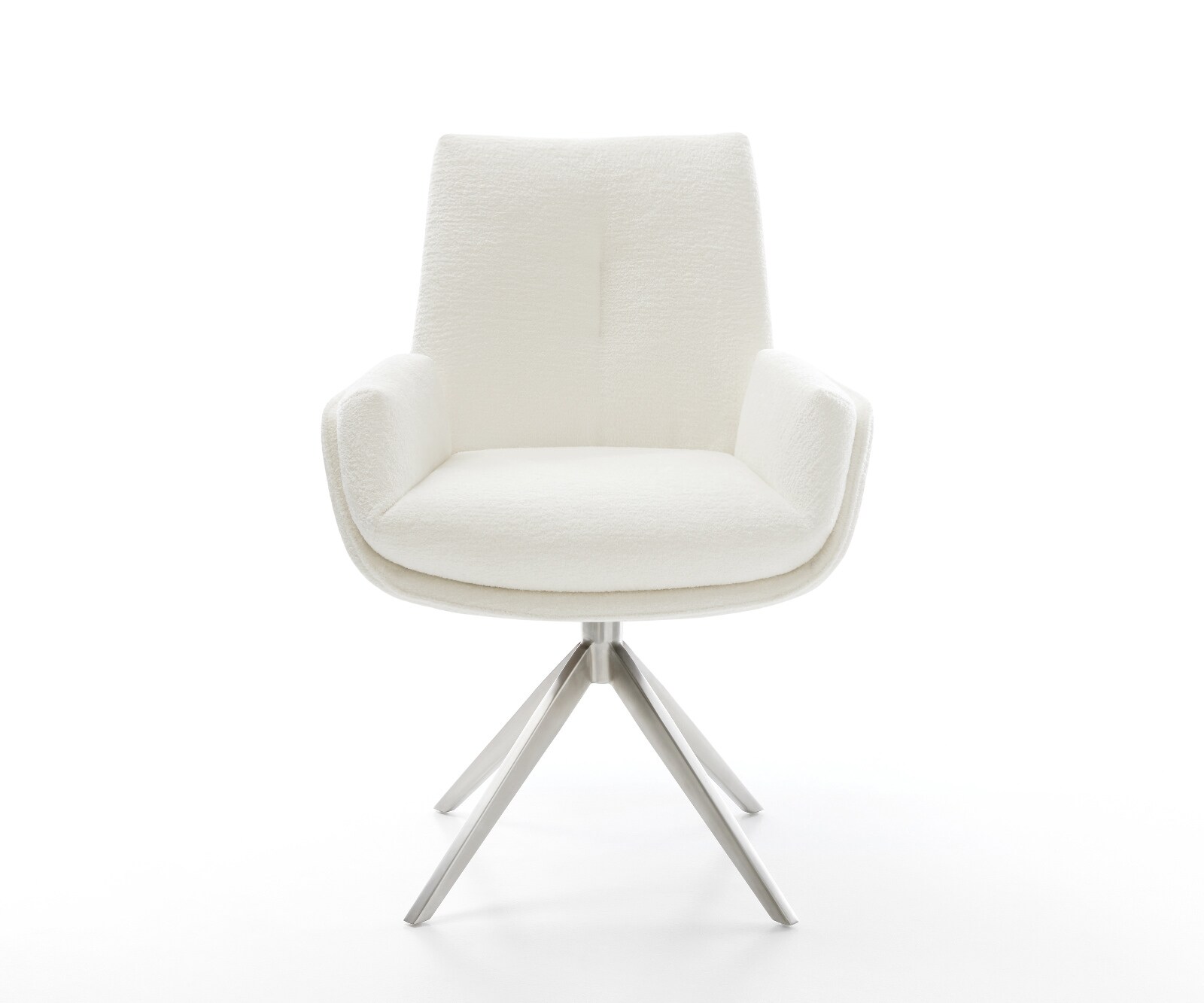 DELIFE Draaistoel Clea-Flex bouclé zacht beige kruisframe breed roestvrij staal 360° draaibaar rocker-functie pocketveer kern