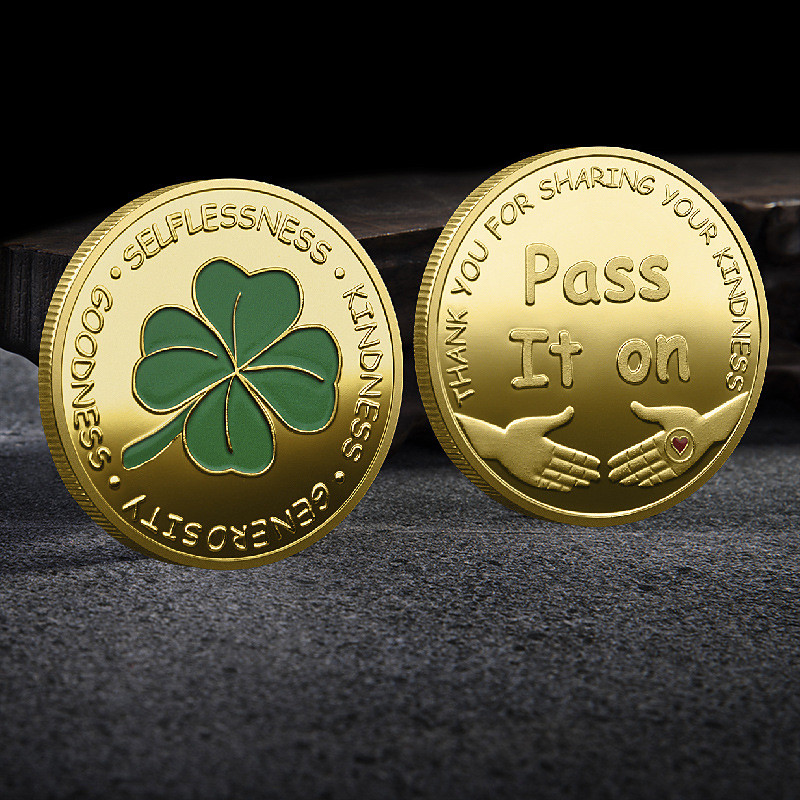 Lucky Challenge Coin with Four Leaf Clover Good Luck St. Patrick's Day Gift Pocket Amulet for Protection and Fortune, Collectible Coin with Acrylic Case
