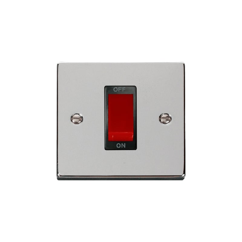 Click Deco 1 Gang 45A Double Pole Switch Polished Chrome Insert Black