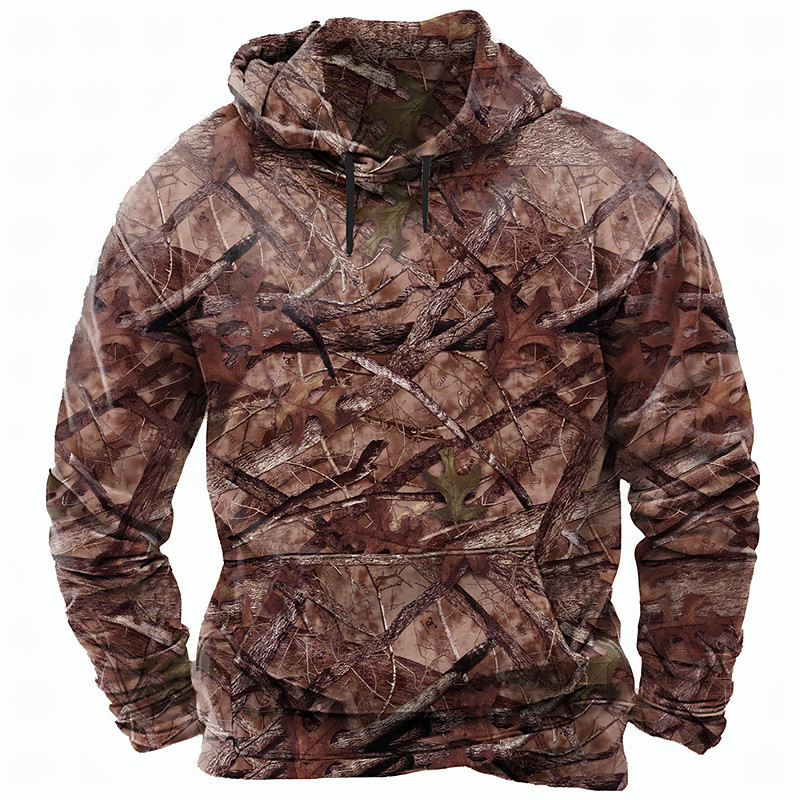 Men's Camouflage Hoodies Sweatshirt Ethnic Casual Long Sleeve Crew Neck Hooded Holiday Hunting Red Green Army Green Drawstring Fall Winter Designer S M L XL XXL XXXL