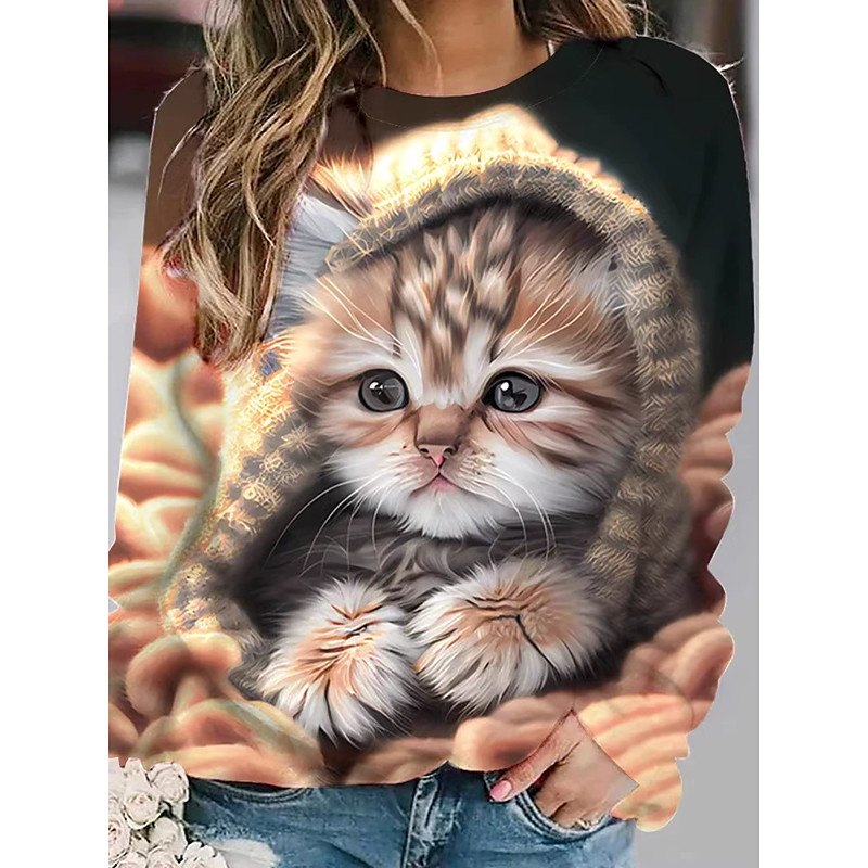 Women's Pullover Sweatshirt Hoodies Animal Cat Dog Fashion Casual Long Sleeve Crew Neck Round Neck Regular Tops Street Dailywear Casual Print Pink Brown Light Grey Spring Fall Winter