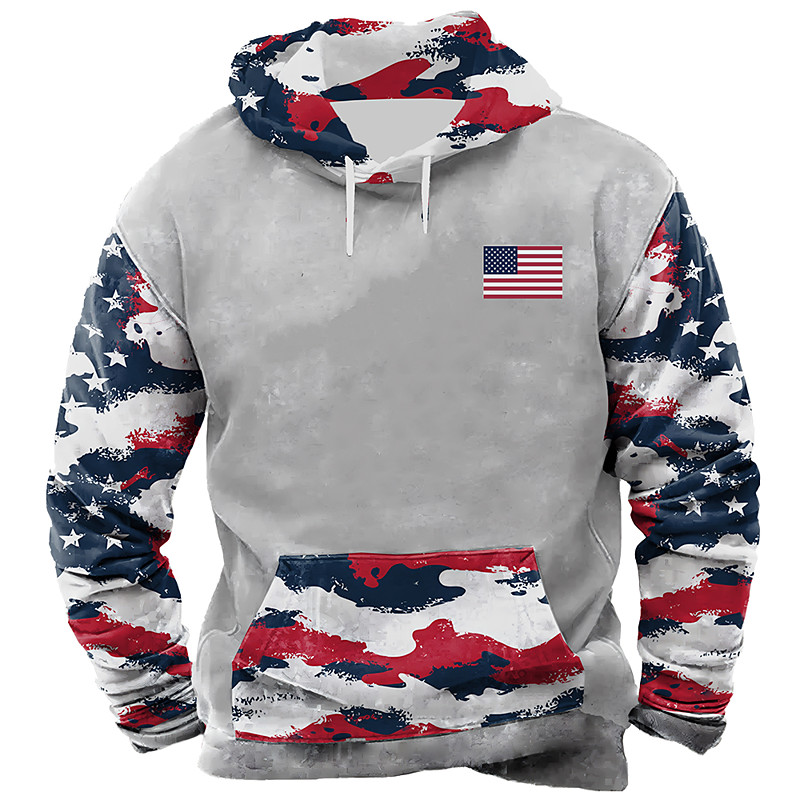 US America 250 Year Anniversary Men's American US Flag Hoodie Sweatshirt Casual Long Sleeve Crew Neck Hooded Hunting Gray Gray 2 Drawstring Graphic Fall Winter Designer S M L XL XXL XXXL
