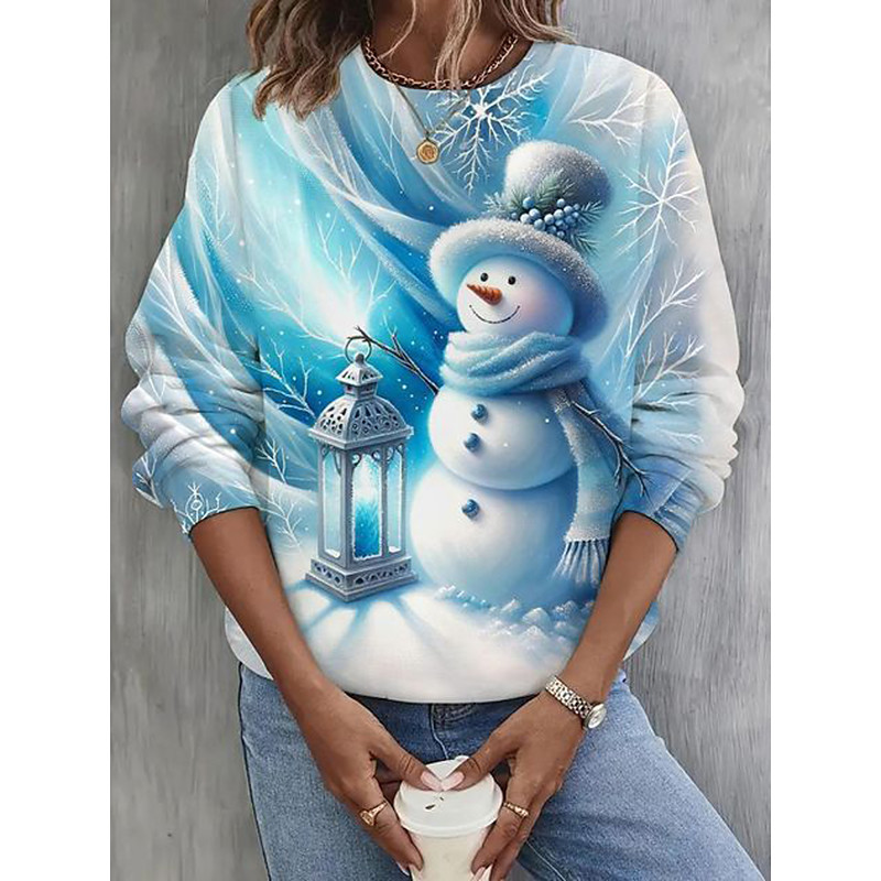 Women's Pullover Sweatshirt Hoodies Graphic Animal Snowman Fashion Casual Long Sleeve Crew Neck Regular Tops Street Dailywear Casual Print White Pink Blue Spring Fall Winter