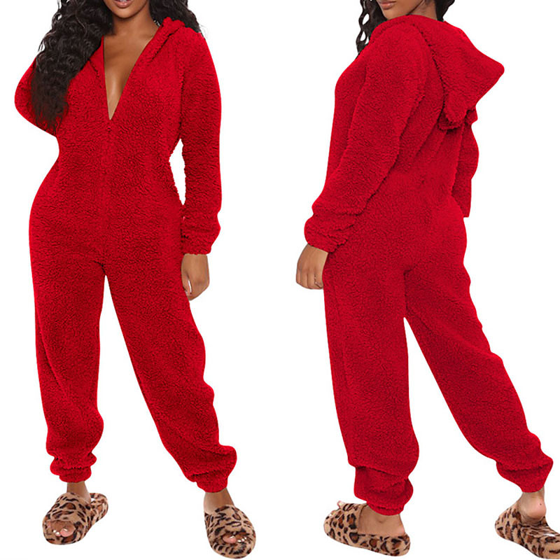 Women's Loungewear Onesie Warm Fashion Sexy Pure Color Zipper Hoodie Pant Vacation Home Street Sleeveless Crew Neck Blue Black White Red Brown Fall Winter Regular Fit