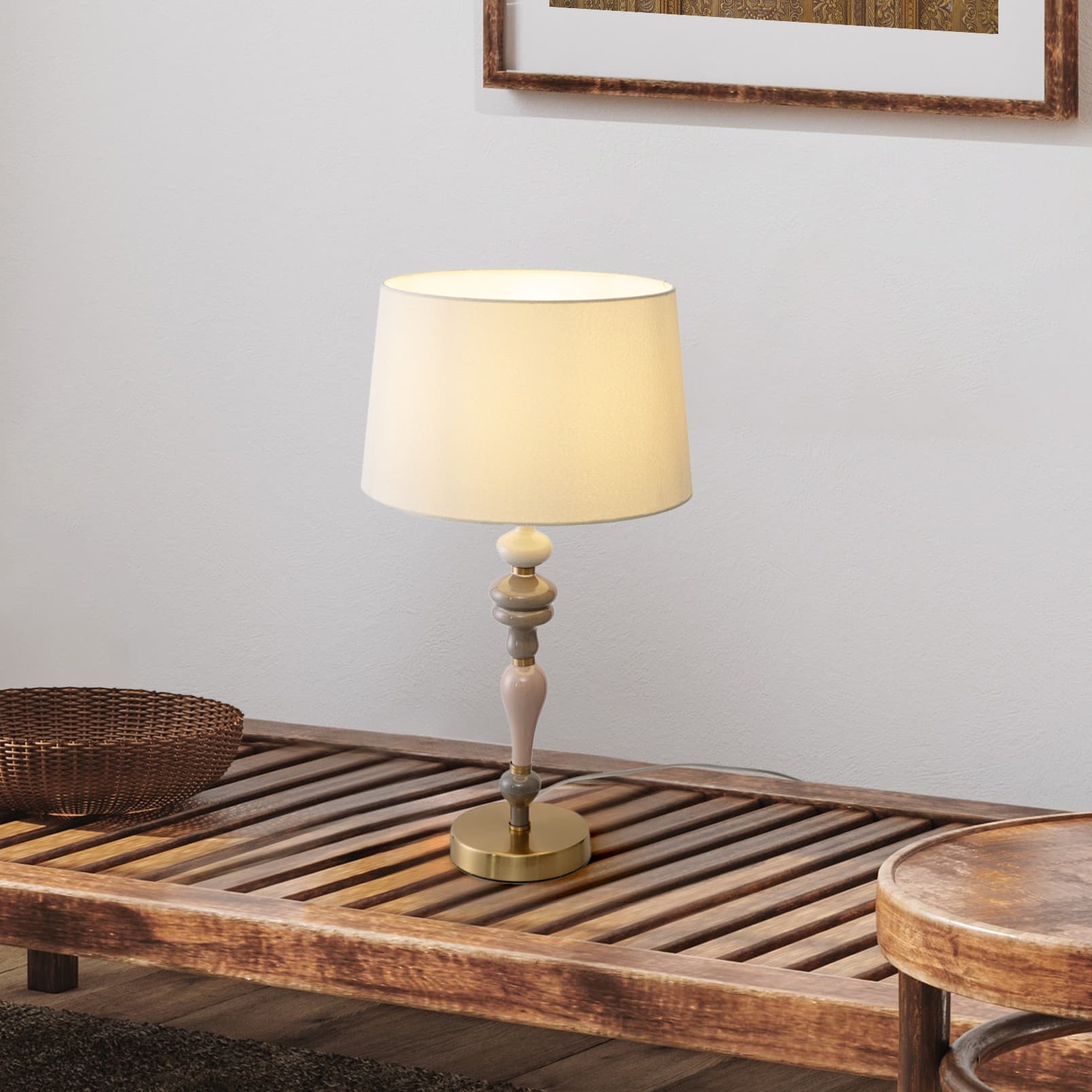 Nova Luce Damo - lampe de table - Ø 34 x 60 cm - laiton antique, orange doux et brun