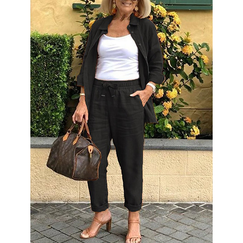 Women's Cotton Linen Sets Two Piece Sets Fashion Casual Comfort Home Daily Vacation Linen Summer Spring Home Outfits