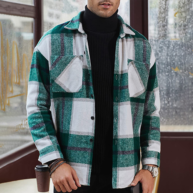Men's Shirt Flannel Shirt Overshirt Lattice Outdoor Street Red Green Khaki Long Sleeve Turndown Spring Fall Clothing Apparel