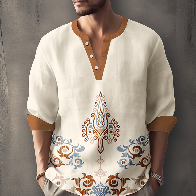 Men's Florals Casual Shirt Button Up Shirt Long Sleeve Fashion Casual Causal Casual Summer Spring V Neck Buttons Yellow