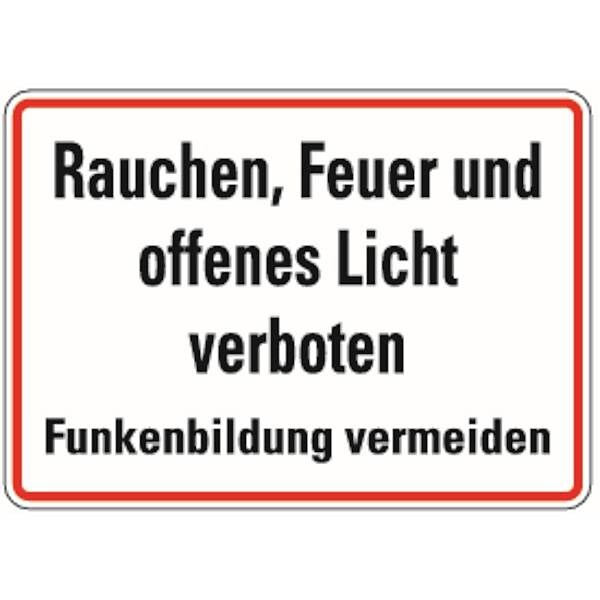Hinweisschild, Rauchen, Feuer und offenes Licht verboten, 250 x 350 mm, Aluminium geprägt - 350x250x0.45 mm Aluminium geprägt