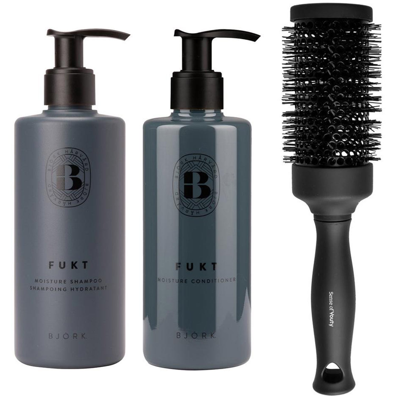Björk FUKT Set Shampoo 300ml, Conditioner 250ml & Blowout Brush - 550 ml