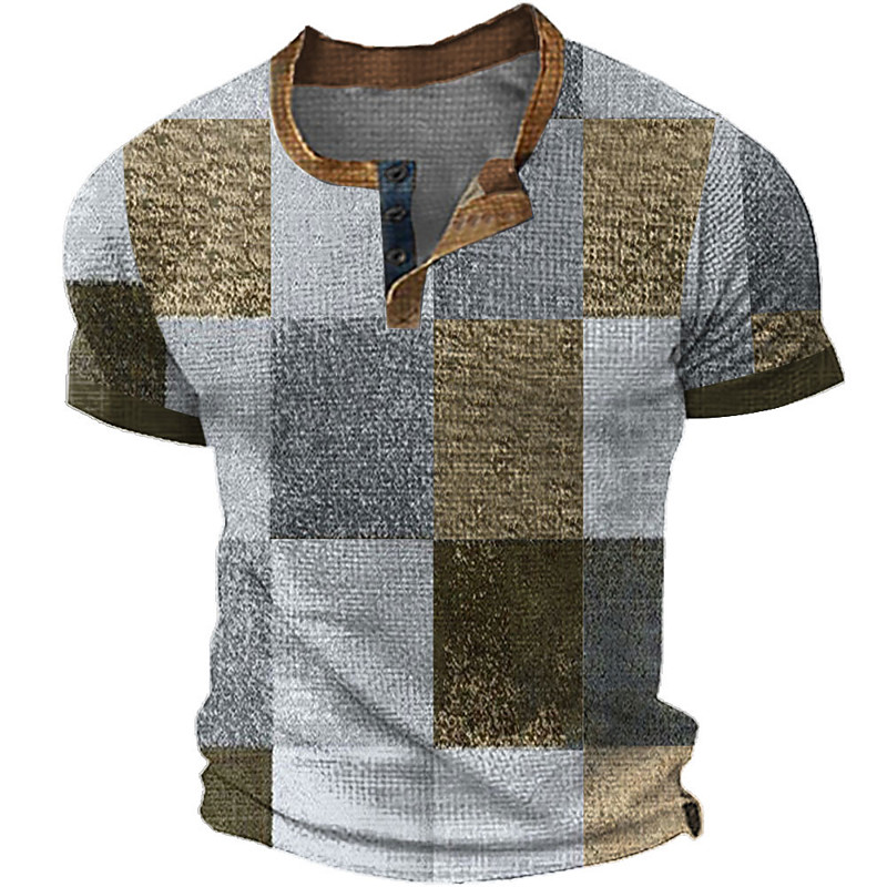 Men's Faux Patchwork Pattern Henley Shirt Waffle T Shirt Short Sleeve Daily Retro Vintage Classic Sports Outdoor Casual Holiday Spring Summer All Seasons Blue Yellow Green Red Grey Henley Henley