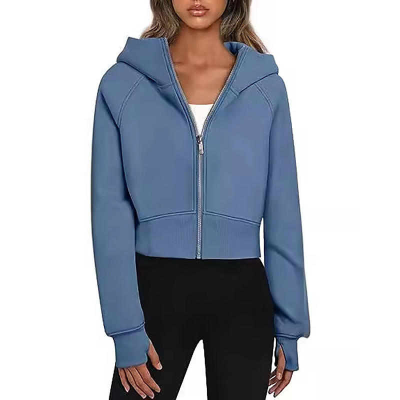 Women's Zip Up Hoodies Plain Elegant Fashion Casual Long Sleeve Hooded Crop Tops Street Dailywear Patchwork Zipper Black Ocean Blue Green khaki Light Grey Fall Winter