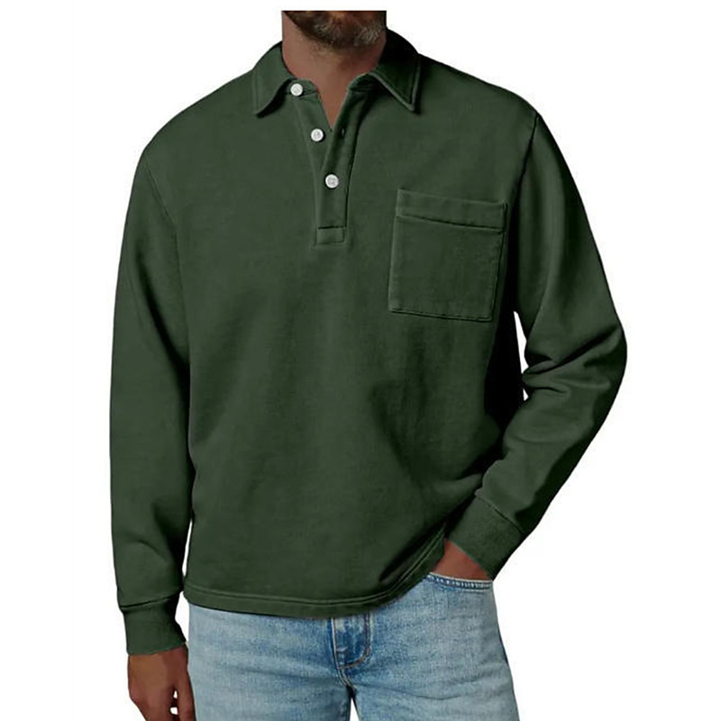 Men's Golf Shirt Golf Polos Shirts Casual Work Lapel Long Sleeve Basic Modern Plain Buttons Front Pocket Spring Fall Regular Fit Blue Black Navy Blue Purple Brown Green Golf Shirt