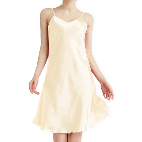Per donna Camicia da Notte Casual Morbido Raso Colore Puro Senza schiena Vestiti Quotidiano Casa Da letto Senza Maniche Spalline azzurro cielo Nero Giallo Rosso Viola Estate Taglia piccola