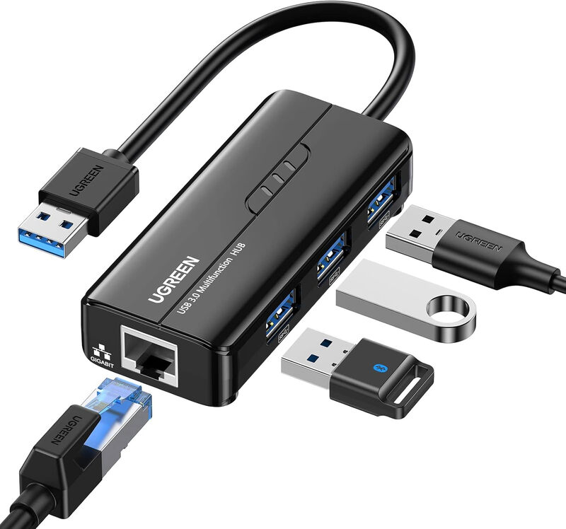 UGREEN 4 in 1 USB-Hub zu Ethernet-Adapter, Gigabit USB Ethernet-Hub zu RJ45 Lan-Adapter mit 3 USB 3.0 Anschlüssen, Plug and Play für MacBook Pro, Steam Deck, Switch, Windows, Festplatte, Tastatur, Maus