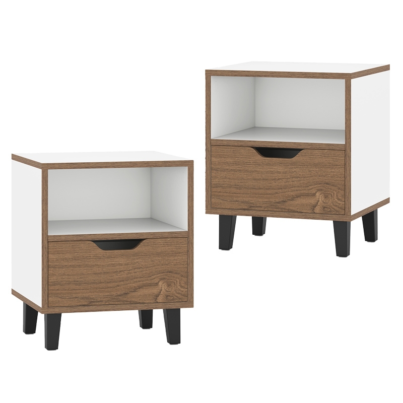 COSTWAY Nachttisch-Set, 2 Stück, kleiner Beistelltisch mit offenem Fach und Schublade, Sofatisch mit Metallstützbeinen