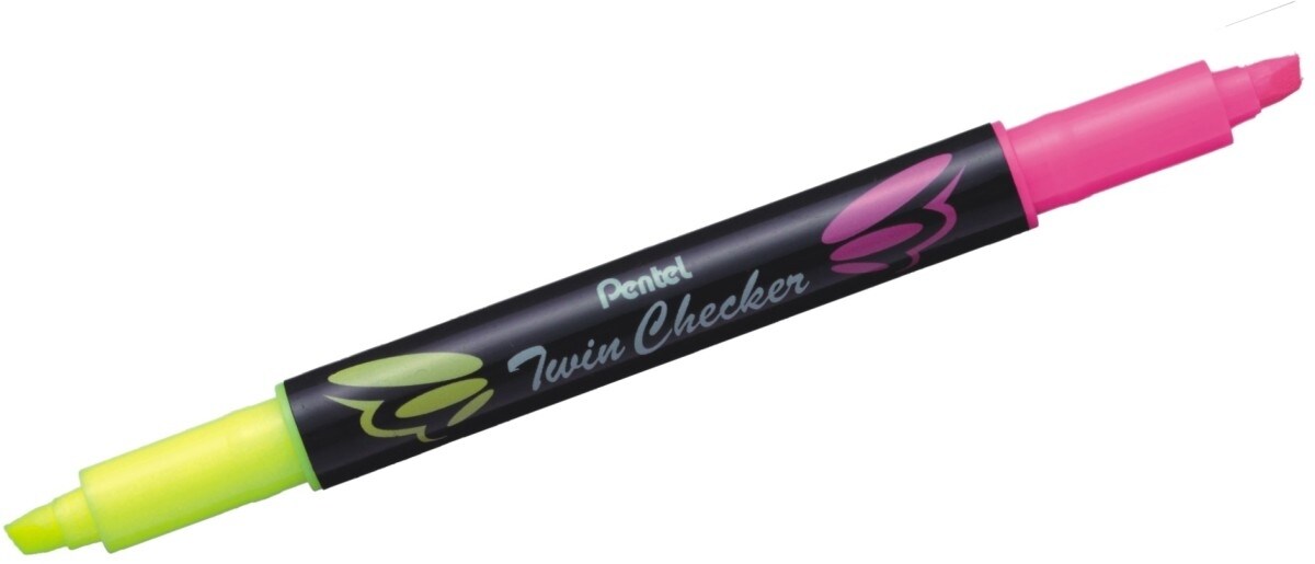 Pentel Textmarker Twin Checker 1-3,5mm gelb/pink Packung mit 12 Stück