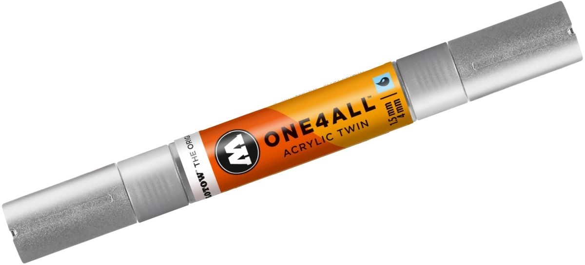 MOLOTOW Permanentmarker One4All Acrylic Twin nachfüllbar 1,5 und 4mm metallic silber Packung mit 3 Stück