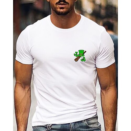 Maglietta da uomo per il giorno di San Patrick Maglietta T a maniche corte Maglietta a collo rotondo Primavera e Estate Trifoglio Moda Designer Stampa di Base Vacanza Per Uscire Nero Bianco Rosso